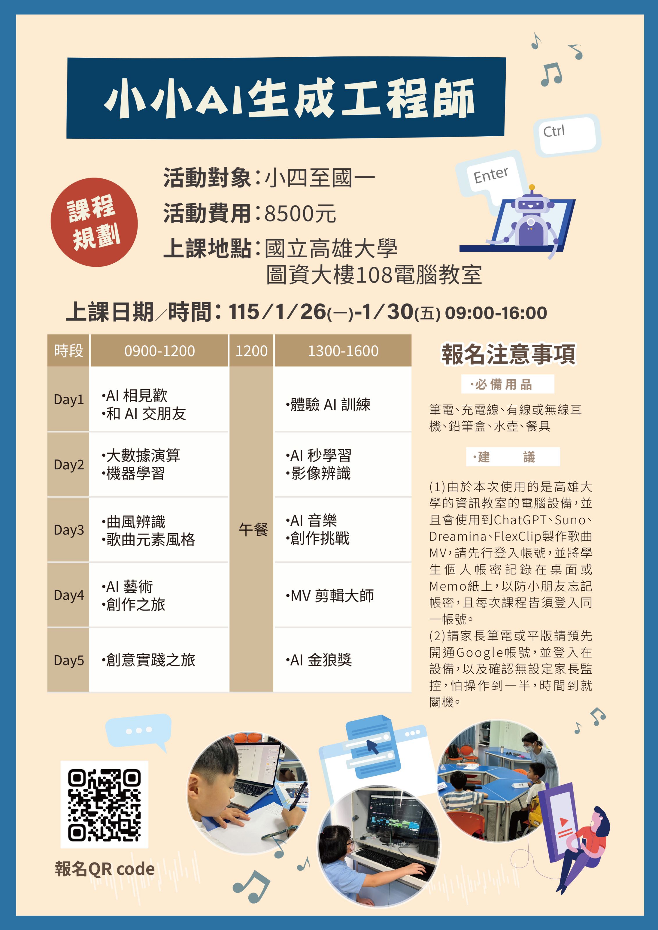 ►課程中將拍攝活動照片、影片,報名成功即同意本校將活動照片或影片作為招生及教育推廣之用。