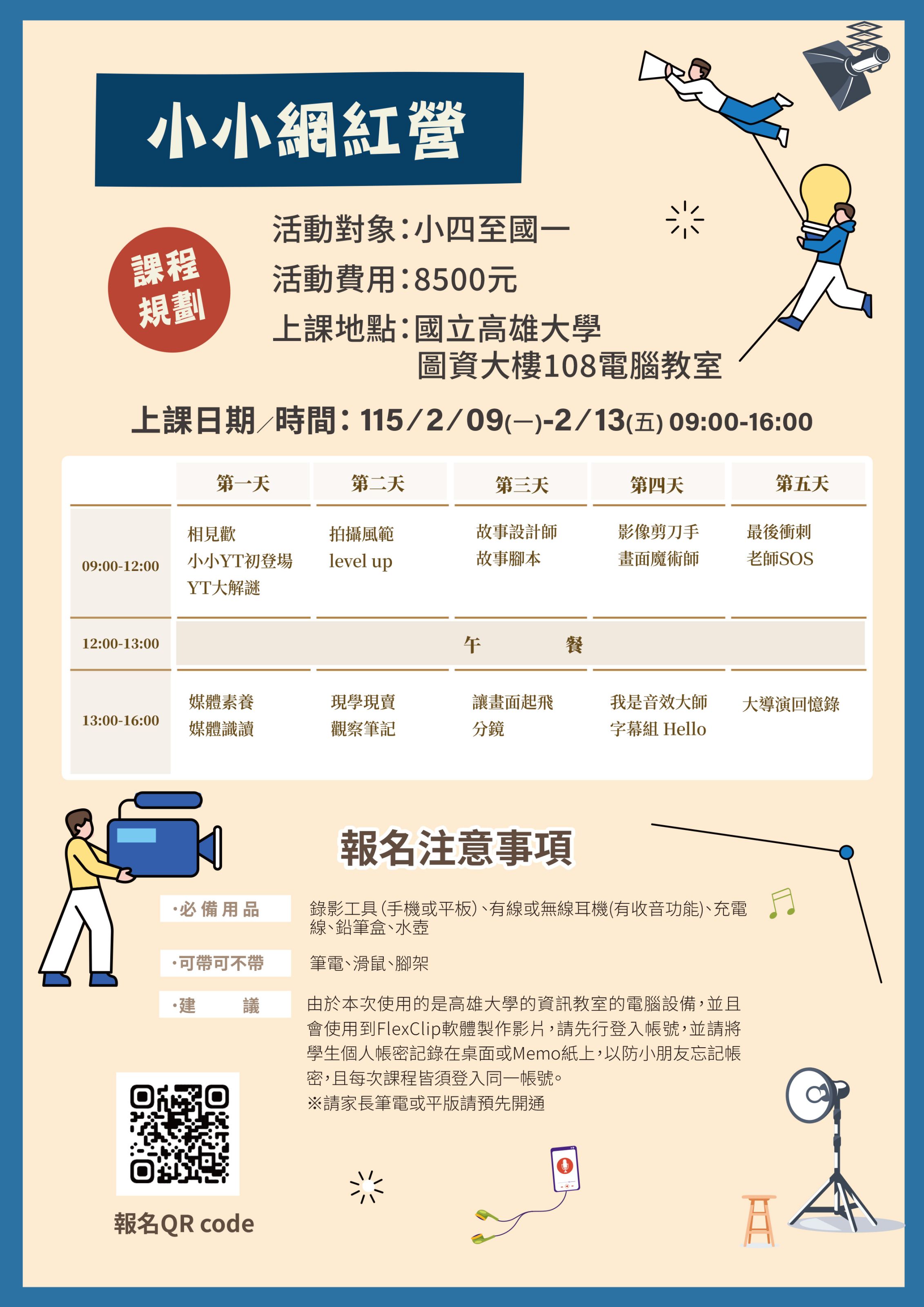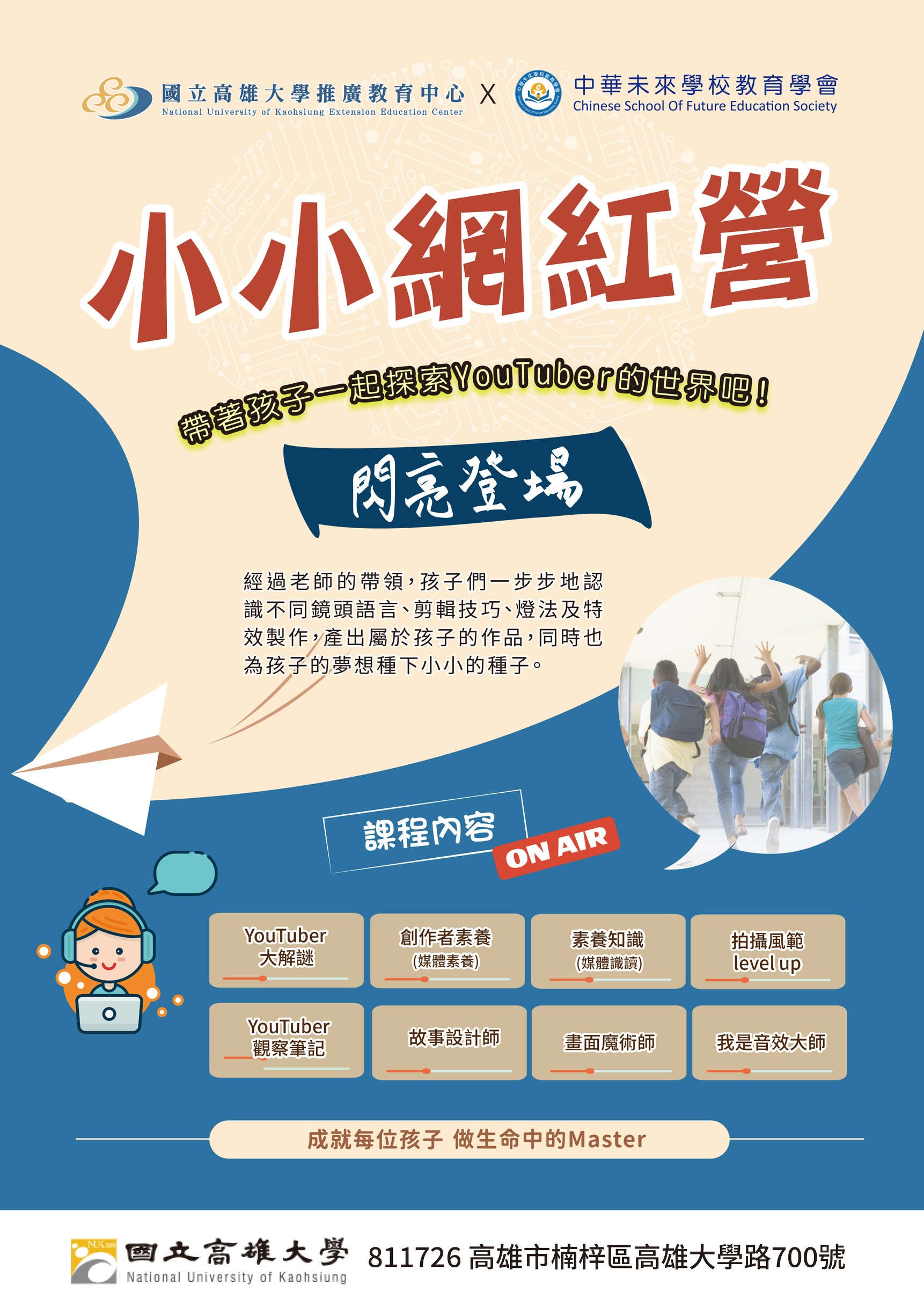 課程中將拍攝活動照片、影片,報名成功即同意本校將活動照片或影片作為招生及教育推廣之用。
