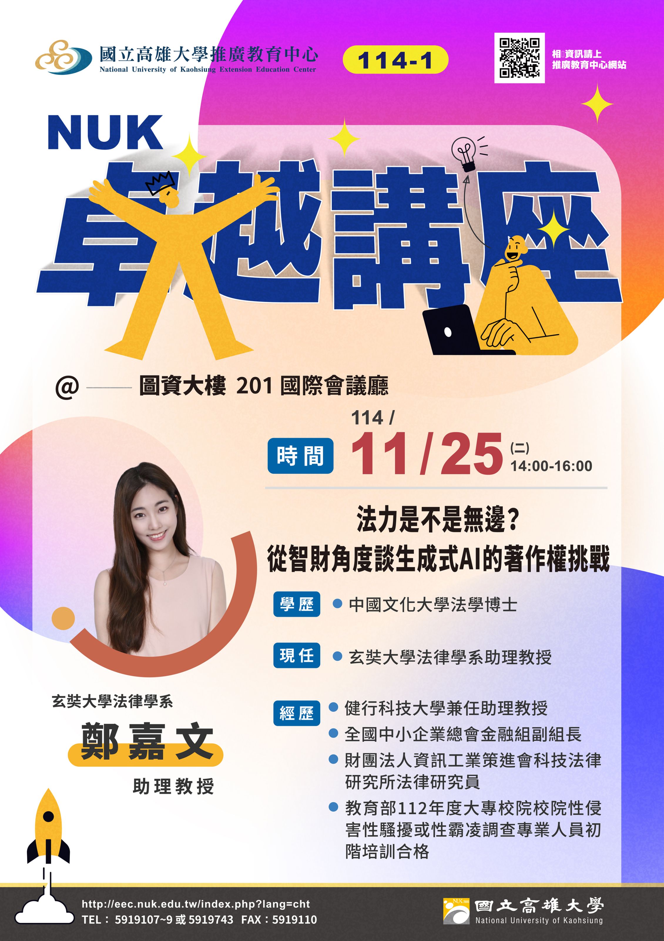 【卓越講座】11月25日敬邀玄奘大學﹝鄭嘉文助理教授﹞蒞臨演講。