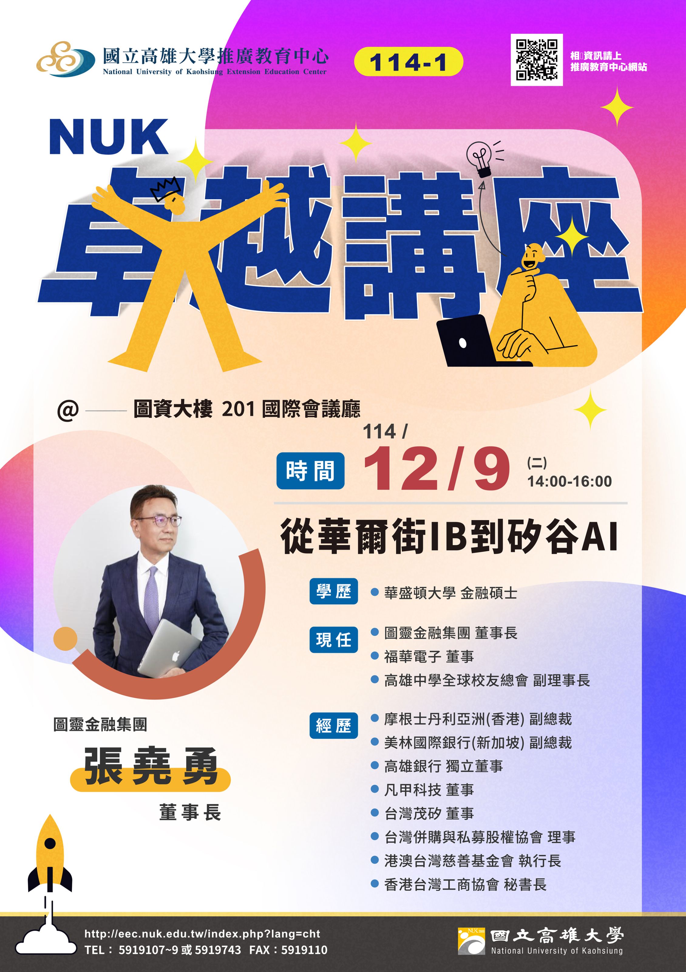 【卓越講座】12月09日敬邀圖靈金融集團﹝張堯勇董事長﹞蒞臨演講。